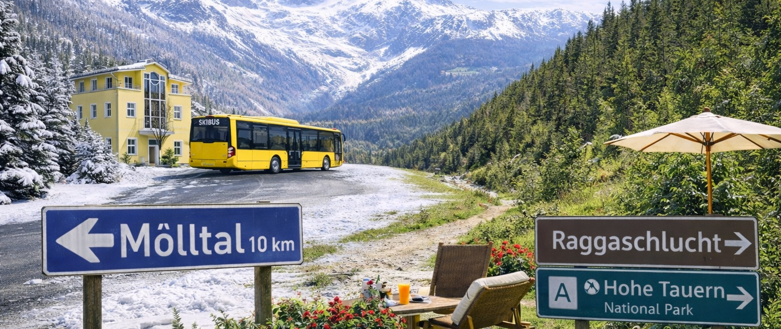 Apartmány Flattach jsou ideální volbou pro všechny, kdo chtějí být blízko hor, lyžování i letních aktivit a zároveň mít klidné a pohodlné zázemí. Ubytování se nachází ve výborné poloze ve Flattachu, jen přibližně 10 minut od ledovce Mölltaler Gletscher a pouhých 50 metrů od zastávky skibusu.